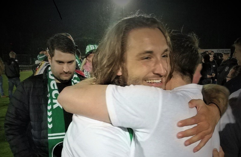 Mirko Boland (36), der schon so einiges in seiner Laufbahn im Fußball erlebt hat, brachte es, nachdem die Feierlichkeiten im Stadion von Drochtersen seinen Lauf nahmen, gleich auf den Punkt. „Es ist einfach nur geil, wenn man die Menschen, unsere Fans sieht, was denen der Aufstieg bedeutet. Das ist für mich mit das schönste überhaupt. Man sieht Leute die weinen vor Freude, das ist unglaublich. Als Fußballer selbst ist das auch super. Wir hatten ein Ziel, sind in die Saison auch als Favorit gestartet. Dem muss man erst einmal standhalten. Wir haben unser erstes Ziel jetzt geschafft, dann darf man auch mal richtig feiern. Ich bin unheimlich stolz, auf alle die mitgewirkt und mitgeholfen haben, auch auf die Fans.“