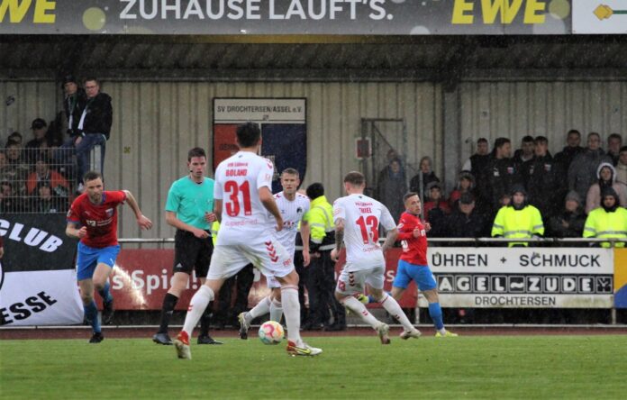 Lübeck – Gerechnet werden muss nicht mehr, seit Freitag steht fest, dass der VfB Lübeck in der Spielzeit 2023/2024 in der 3. Liga auflaufen wird. Den letzten Restzweifel, dass das nicht so sein könnte, zerstreute der Auftritt der Schleswig-Holsteiner am Freitag im Kehdinger Stadion, wo es dem VfB Lübeck gelang beim SV Drochtersen/Assel mit dem 1:0 den letzten Schritt zu machen. Gefeiert wurde, nachdem man schon nach dem Derbysieg davor gegen den SC Weiche Flensburg 08 (2:0) ordentlich Gas gegeben hatte, natürlich auch noch unmittelbar nach dem Abpfiff in Drochtersen, dazu spät in der Nacht und nach der Ankunft auf der Lohmühle.
