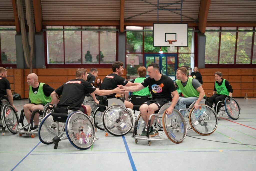 Lübeck – In allen Belangen ein gutes Turnier war der Ostseepokal des RSC Hanse am vergangenen Sonnabend. Trotz eines kleinen Teilnehmerfeldes von nur vier Mannschaften verbuchten die Rollstuhlbasketballer das Revival des Benefizturniers als Erfolg. Siegreich waren die RADIO LÜBECK MEETS HL-SPORTS Allstars, die alle fünf Spiele des Turniers für sich entschieden. Doch der Erfolg stand dabei nicht im Vordergrund – der besondere Spirit des Turniers hatte alle Teilnehmer erfasst.