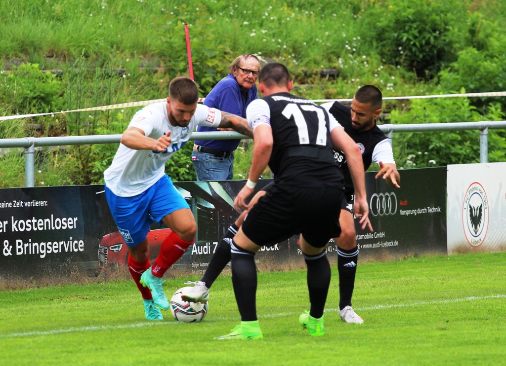 Lübeck – Da war einiges los am Sonnabend bei der Saisoneröffnung des 1. FC Phönix Lübeck. Die Adlerträger boten den Zuschauern, 521 waren dem Ruf gefolgt, nicht nur ein buntes Rahmenprogramm, sondern zeigten auch auf dem Platz ihr Können. So gewann der Traditionsverein im Testmatch an der Travemünder Allee durchaus verdient mit 1:0 (wir berichteten) gegen Tennis Borussia Berlin. HL-SPORTS hakte nach dem Abpfiff beim Siegtorschützen und Trainer des 1. FC nach, die das Vorangegangene aber durchaus konträr bewerteten.