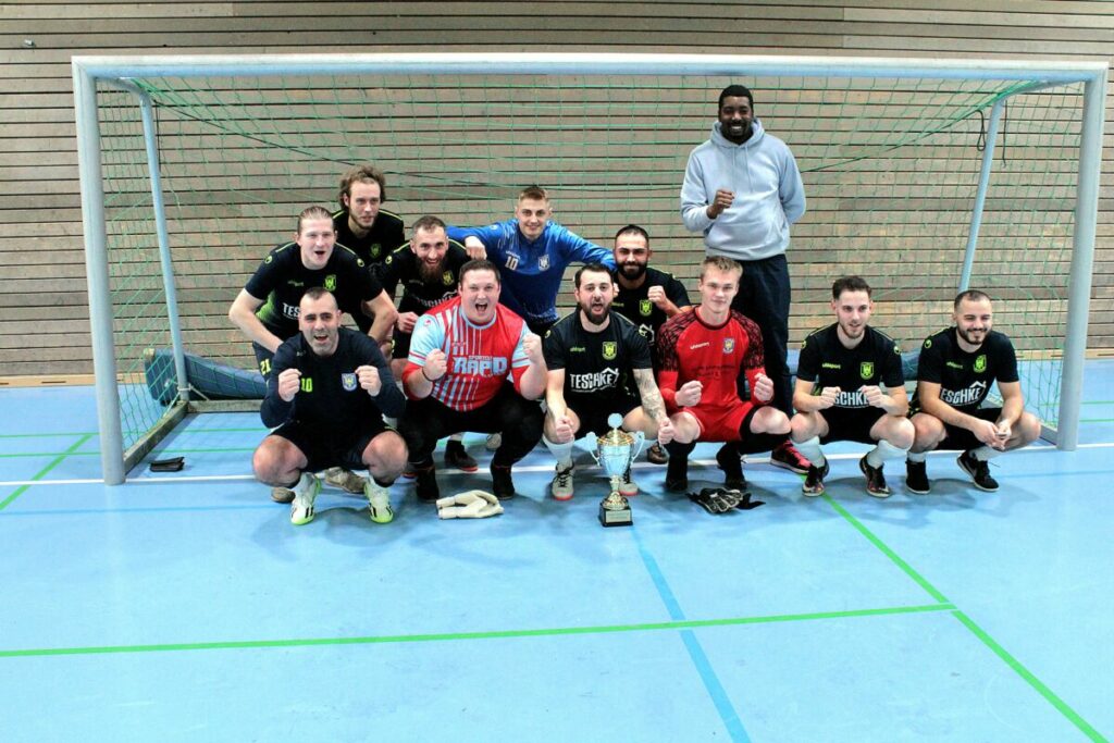 Lübeck – Ab 9.30 Uhr rollte der Ball in der Lübecker Hansehalle. Die Hallensaison wurde am vergangenen Sonnabend mit dem fünften Azadi-Cup eröffnet und zunächst traten acht Teams im Vormittagsturnier an. Gesucht wurde der Nachfolger der SG Reinfeld/Kronsforde, die sich im Vorjahr sich den sicherte. Gastgeber SV Azadi Lübeck (Team A) startete gegen die zweite Mannschaft des SC Rapid Lübeck. Nach den gespielten elf Minuten war es eine klare Angelegenheit für die Rapid-Reserve. Das Team um Ugur Sari und Tino Arp, die beide beim 4:0-Auftaktsieg trafen, sorgte früh für ein erstes Ausrufezeichen. Es sollte nicht der letzte deutliche Sieg der Mannschaft vom Kasernenbrink sein, denn am Ende der Vorrunde standen sie an der Tabellenspitze der Gruppe A. Mit einer Maximal-Punkteausbeute von neun Zählern und 14:2 Toren, zog man ins Halbfinale ein und galt schon früh für einige als Top-Favorit. Hinter dem Kreisligisten ordnete sich aufgrund mehr geschossener Tore die Mannschaft des SV Azadi Lübeck (A) ein. In Gruppe B grüßte der TSV Schlutup von der Tabellenspitze. Mit sechs Punkten zogen sie ins Semifinale ein, obwohl das Auftaktspiel gegen Azadi (B) noch knapp verloren wurde (0:2). Aufgrund des direkten Vergleichs hatte man die Nase gegenüber der SG Reinfeld/Krosnforde vorne. Etwa um 12.30 Uhr ging es ins erste Halbfinale und der SC Rapid Lübeck II forderte die SG Reinfeld/Kronsforde. Gegen die bis dahin defensiv stabile SG gewann man deutlich und zog mit 6:0 ins Endspiel ein. Der Gegner wurde im zweiten Halbfinale ermittelt und es war eine deutlich engere Angelegenheit. Nach der regulären Spielzeit stand es Remis, sodass es ins Entscheidungsschießen ging. Beim Gastgeber versagten die Nerven, sodass es am Ende 3:2 für den TSV Schlutup stand. Im Spiel um Platz drei folgte das nächste Entscheidungsschießen und erneut hatte der SV Azadi Lübeck das Nachsehen. Durch ein 4:3 sicherte sich der Vorjahressieger den Bronze-Platz. Das Endspiel stand an und es dauerte nicht lange, bis die Zuschauer die ersten Tore sahen. Nach einem Distanzschuss der Schlutuper stand es zwischenzeitlich 1:1, doch am Ende war es ein deutlicher 5:1-Sieg von Rapid II. Der Titel des Vormittagsturniers ging an den Kasernenbrink, doch dabei sollte es nicht bleiben. Sie stellten mit Unterschiedkicker Tino Arp den „Spieler des Turniers“. Doch auch der Zweite aus Schlutup sollte einen kleinen Titel mitnehmen. Andre Marcel Bade sicherte sich mit starken Paraden und mehreren gehaltenen Neunmetern den Preis zum „Torhüter des Turniers“.