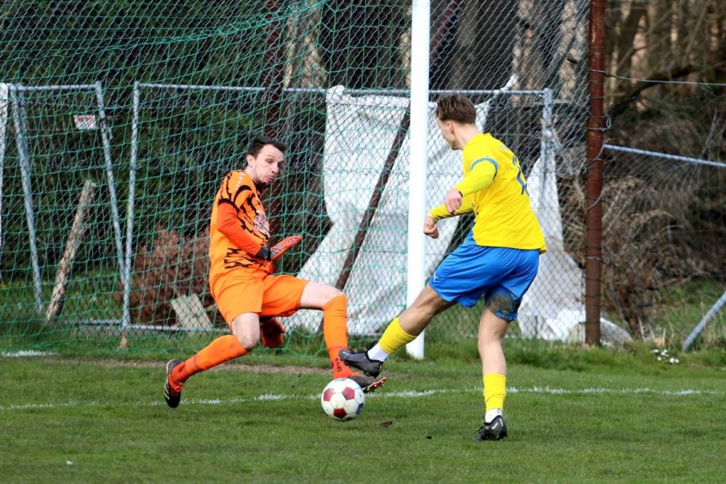 Die SG Bösdorf/Malente wollte nach zwei Siegen gegen Schönkirchen (3:1) und den VfR Laboe (2:0) am Ostermontag den dritten Dreier in Serie holen. Es ging nach Raisdorf zum Tabellenvorletzten, der am Dienstagabend den Negativtrend mit einem 3:0-Auswärtssieg bei der SpVgg Putlos beendete. Tabellarisch war Bösdorf/Malente der haushohe Favorit, doch in der Fremde tat sich die Mannschaft von Benjamin Berger oftmals schwer. Man war also gewarnt vor einer unbequemen Aufgabe. Dabei fehlte Leo Korn aufgrund seiner fünften Gelben Karte. Dennoch war man offensiv in guter Besetzung. Lucas Paulauskas und Niklas Brandtner agierten als Doppelspitze vor Thore Meyer. Die Anfangsphase auf dem schmalen Rasenplatz an der Schwentine war sehr durchwachsen. Es spielte sich viel im Mittelfeld ab, wobei es teils hektisch war. Kein einziger Abschluss kam in der Anfangsphase zustande – von beiden Mannschaften. Nach 16 Minuten tauchte RTSV-Stürmer Marvin Braun mal vor Jesko Saggau auf, scheiterte an diesem, doch die Fahne ging aufgrund einer Abseitsposition hoch.