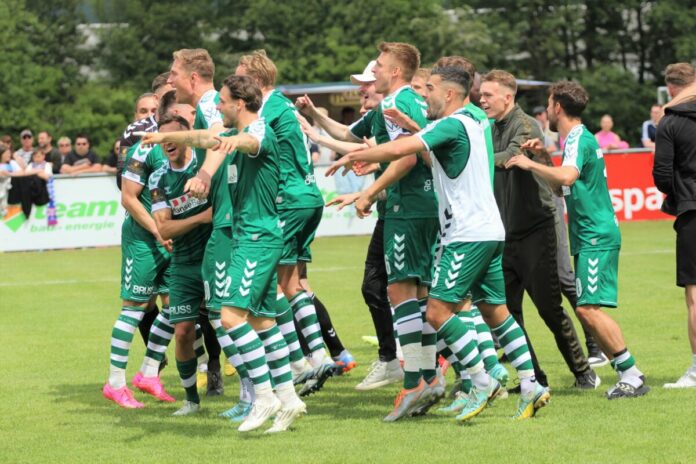 Lübeck – Am Sonnabend kam es im Finale des schleswig-holsteinischen Landespokal zum Aufeinandertreffen zwischen dem VfB Lübeck und SC Weiche Flensburg 08. 3400 Zuschauer (darunter 1200 lautstarke aus Lübeck) wohnten dem Kick im Manfred-Werner-Stadion bei, der letztendlich aus Sicht der Grün-Weißen mit einem verdienten 2:1-Sieg (wir berichteten) ein schönes Ende fand. Der Titelverteidiger steht dadurch in der lukrativen, ersten Runde im DFB-Pokal, darf sich dort auf ein Heimspiel gegen einen Erst- oder Zweitligisten freuen.Das allerdings ist Zukunftsmusik. Zunächst standen die Protagonisten nach dem Abpfiff noch einmal der Presse Rede und Antwort in Flensburg, bevor es auf die Heimfahrt ging und die Mannschaft (19 Mann) sich jetzt zeitnah nach Mallorca begibt.
