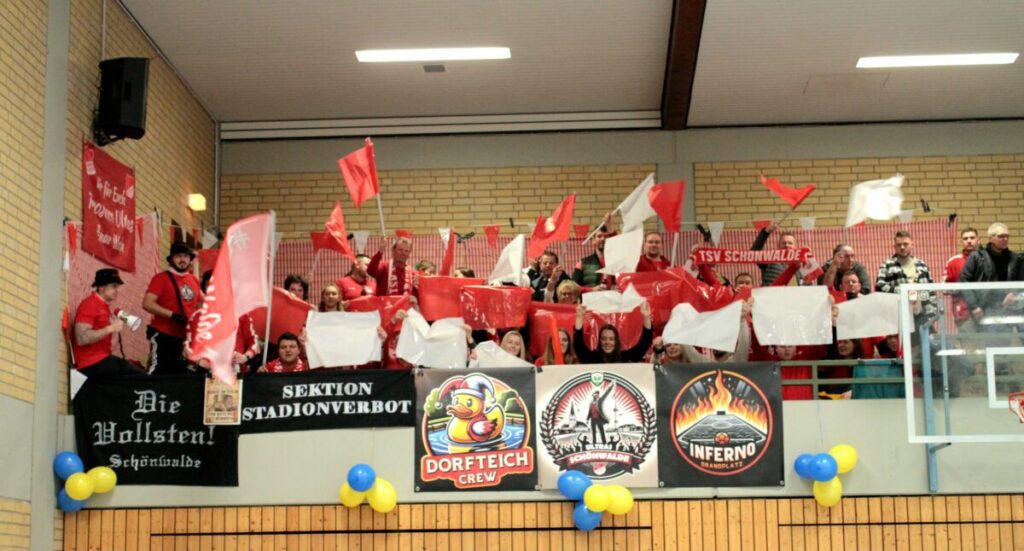 Grömitz – Am Sonnabend stieg in der Grömitzer Ostholsteinhalle die zweite Ausgabe des 28Black Cups. Acht Mannschaften gingen ins Rennen, um die Nachfolge des TSV Schönwalde zu ermitteln. Gegen 19.45 Uhr stand nach einem extrem spannenden Finale der Turniersieger fest. Die zahlreichen Zuschauer sahen tolle Spiele und viele Tore. Unter den knapp 500 Zuschauern befanden sich auch wieder zahlreiche, in rot gekleidete Schönwalder Fans, welche für eine tolle Stimmung sorgten. Sei es durch ein Fahnenmeer, eine Choreografie, Aktionen mit ihren Fanschals oder aber einigen Gesängen.