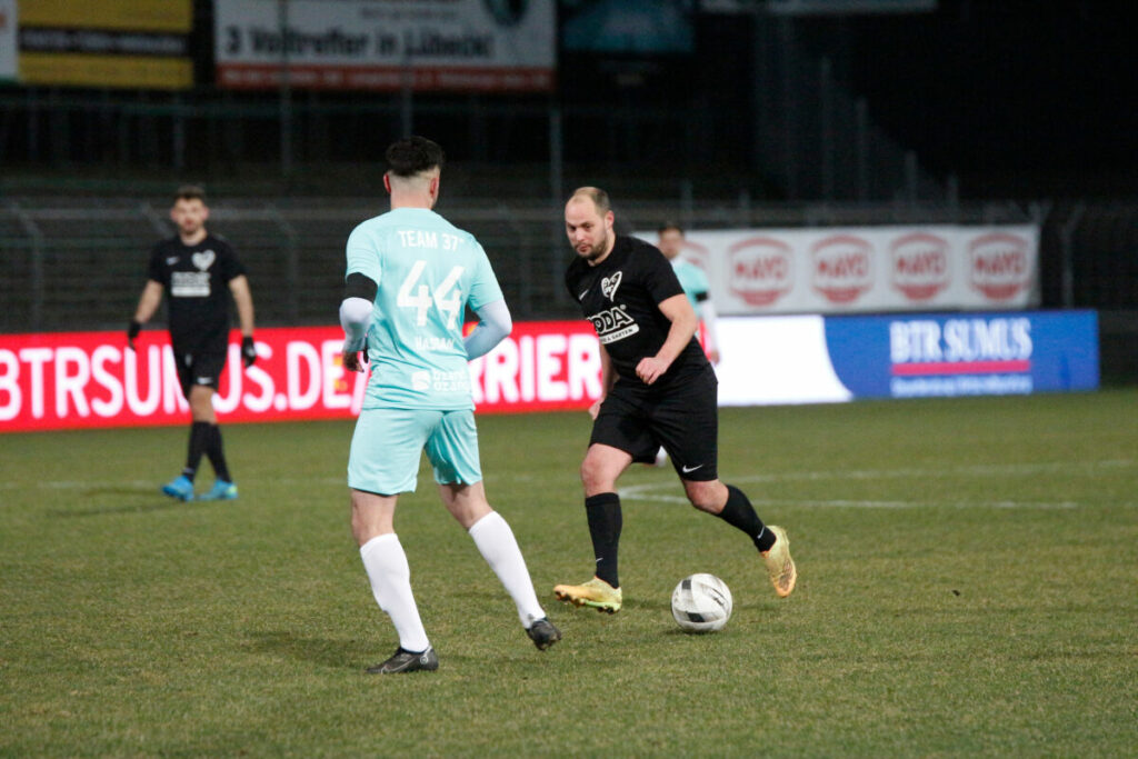 Lübeck – Es war ein gelungener Abend, der nicht in weniger als zweieinhalb Wochen Vorbereitung bedurfte. Das Benefizspiel zu Gunsten der Erdbebenopfer in Syrien und der Türkei war ein großer Erfolg. Am vergangenen Dienstag trafen die zusammengestellten Teams „37 Grad“ und „Lübecker Allstars“ auf der Lohmühle aufeinander. Regionale Fußballergrößen von der Regionalliga bis in die Kreisklasse spielten mit und gegeneinander – für den guten Zweck.