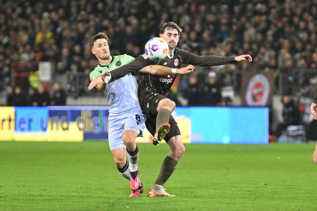 Zeikampf Enzo Leopold (Hannover 96) gegen Connor Metcalfe (FC St. Pauli) Foto:Lobeca/ Andreas Hannig