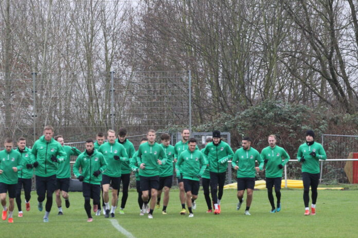 Lübeck – Um 10.38 Uhr betrat am Sonnabend Felix Drinkuth als erster Spieler des VfB Lübeck den Trainingsplatz. Dem Stürmer folgten weitere 20 Mann (insgesamt 3 Keeper/18 Feldspieler) auf dem durchweichten Untergrund an der Lohmühle, die zum Auftakt der Vorbereitung auf die Restspielzeit vor Ort waren.