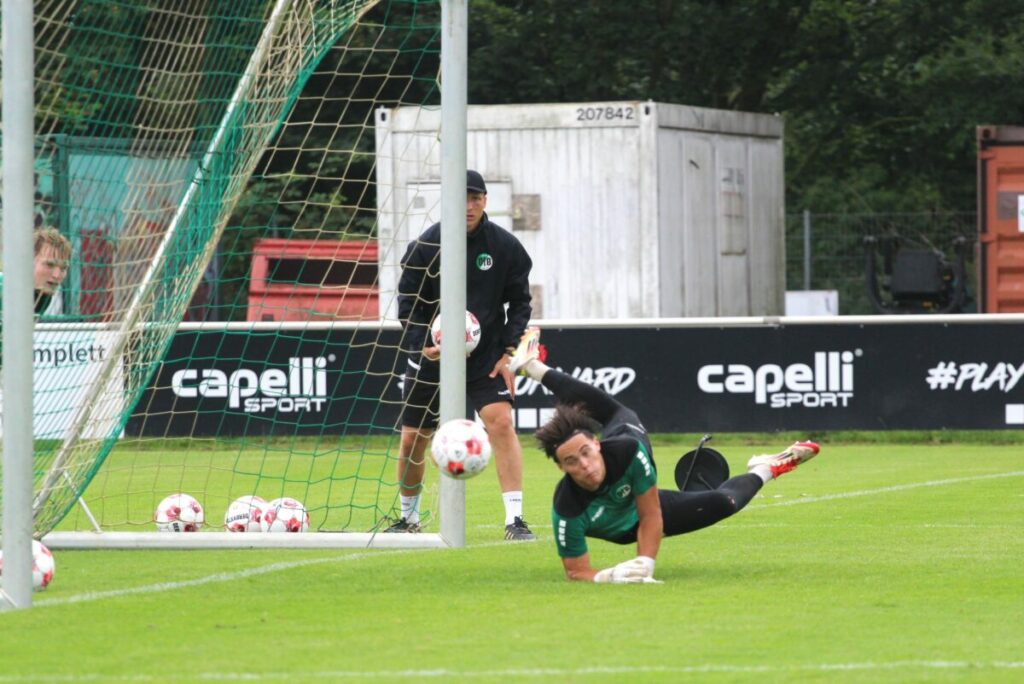 Lübeck – Am Sonnabend (13 Uhr) geht es für den VfB Lübeck im ersten Pflichtspiel im Jahr 2026 ins Eilenriedestadion und zur Zweitvertretung von Hannover 96. Wie immer bat der Lübecker Regionalligist dementsprechend im Vorwege, heute am frühen Freitagnachmittag, zum Pressegespräch, tauschte sich dort mit den anwesenden Journalisten aus. Dabei verkündete Guerino Capretti zum Thema der Nr.1 im Tor eine etwas überraschende Variante mit Blick auf die Restspielrunde in der Regionalliga Nord und auf das Keeper-Duo Finn Böhmker und Phillip Diestel. Man könnte auch von Jobsharing sprechen. „Ich habe zwei gute Torhüter, ich möchte beide im Tor haben. Das geht natürlich nicht. Deshalb werden wir ein „Vierer-Modell“ machen. Finn bekommt die ersten vier Spiele, dann kommt Phillip im Wechsel“, so der Cheftrainer des VfB. Mehr zum anstehenden Spiel folgt später bei HL-SPORTS.