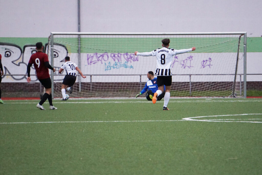 Die Gastgeber überraschten die rund 200 Zuschauer, denn Can Moray (eigentlich Stürmer), der erst vor wenigen Wochen für die Defensive verpflichtet wurde, stand als Torhüter zwischen den Pfosten. Seine Vorderleute begannen verhalten, aber immer wieder mit dem Drang nach vorne zu kommen. Die Viktoria-Abwehr ließ allerdings kaum etwas zu, war sehr gut eingestellt. Ein Pfostenschuss in der 17. Minute verhinderte dabei einen Rückstand. Hinten sauber und vorne trafen die Gäste mit dem ersten Schuss. Grund war ein katastrophaler Aufbaufehler des TüSV, bei dem sich Hamied Kaderi (18.) bedankte, Moray überwand und locker einschob. Die Hausherren wirkten nicht geschockt, kamen noch vor der Pause zum Ausgleich, den Ömer Ünsal (38.) nach einem Steckpass in den Strafraum erzielte.