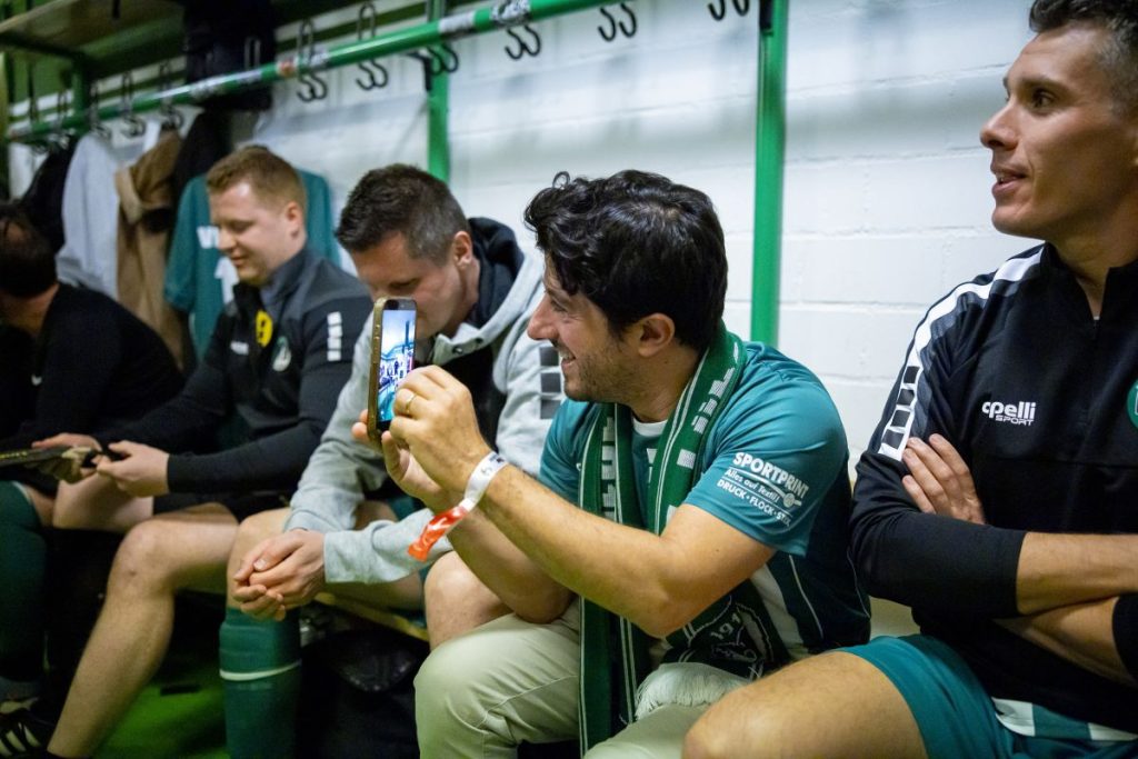 Nach dem Abpfiff und dem obligatorischen gemeinsamen Foto auf dem Rasen ging der Abend fließend in ein gemütliches Beisammensein über. Bei Stadionwurst vom Gourmet Kontor und Kaltgetränken von Carlsberg wurden die Szenen des Spiels noch einmal analysiert, bevor man gemeinsam in der Lounge die „echte“ Königsklasse zwischen Bayern München und Real Madrid verfolgte.