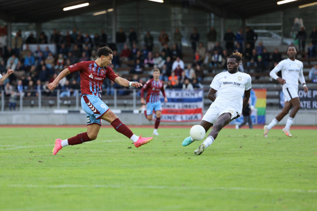 Lübeck – Der 1. FC Phönix Lübeck gewann am Freitagabend das Regionalliga-Topspiel gegen SC Weiche Flensburg mit 2:1 (0:0). Ein Doppelschlag nach der Pause, bei dem der eingewechselte Neuzugang Ganda direkt seinen Premierentreffer feierte, brachte den Heim-Erfolg. Die Hanseaten stehen nun mit 17 Punkten weiterhin auf Platz vier.