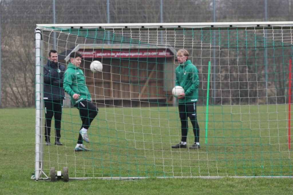 Weiterhin nicht voll dabei sein können die angeschlagenen Spieler, Lukas Schmitt und Ramiz Demir (Foto unten), die beide u.a. mit Physio Yannick Bremser individuell arbeiten. Auch Schlussmann Noah Oberbeck ist aktuell etwas ausgebremst, drehte dementsprechend aufgrund einer Bauchmuskelverletzung nur ein paar Laufrunden. Beim VfB geht man aber davon aus, dass das Trio „noch in dieser Woche“ ins Mannschaftstraining einsteigen kann.