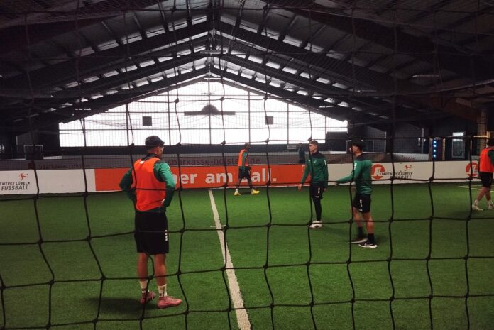 Lübeck – Die Vorbereitung ist weiterhin eine echte Herausforderung für den VfB Lübeck. Das für Sonnabend angesetzte Gastspiel der Grün-Weißen beim SSV Jeddeloh in der Regionalliga Nord wurde gestern (wir berichteten) bereits abgesagt. Das aktuelle Training gestaltet sich zudem weiterhin schwer. Aufgrund von Frost und Schneefall konnte man an der Lohmühle beim Trainingsstart in die Woche nicht auf Kunstrasen draußen spielen. Stattdessen ging es relativ spontan am Dienstagnachmittag (14.30 Uhr) in die Soccerhalle.