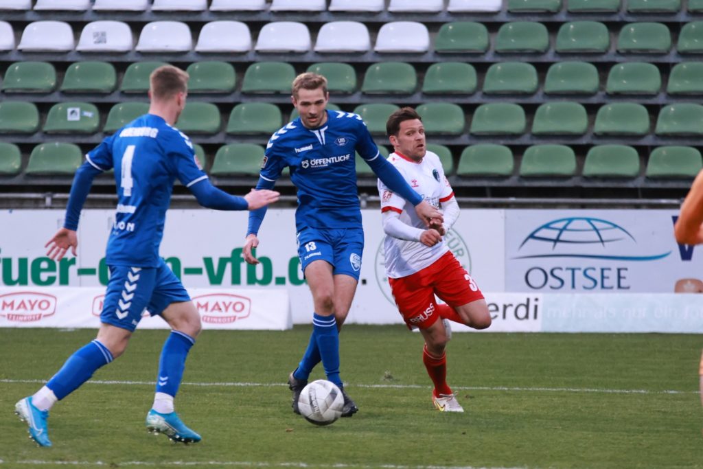 Lübeck – Mirko Boland sprach schon unmittelbar nach dem Abpfiff der Begegnung gegen den VfB Oldenburg (1:2) davon, dass die Grün-Weißen personell gesehen am Stock gehen. Besserung scheint auch vor dem Kick am Sonnabend bei der U23 von Hannover 96 kaum in Sicht. Mateusz Ciapa kassierte gegen den Namensvetter aus Niedersachsen seine 10. Gelbe Karte, muss Zwangspausieren. Im Gegenzug haben zwar Morten Rüdiger und Samuel Abifade ihre Sperre abgebrummt, der letztgenannte wurde allerdings inzwischen positiv auf das Coronavirus getestet. Ebenso wie Kapitän Tommy Grupe und davor Malek Fakhro, der schon beim Spiel gegen Oldenburg nicht spielen konnte. Zum Thema Coronafälle sagt Lukas Pfeiffer: „Malek wird etwas früher zurückkehren, weil er schon zwei Tage in Quarantäne ist, die anderen beiden etwas später.“