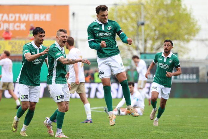 Lübeck – Am Sonntagnachmittag hatte der VfB Lübeck in der Regionalliga Nord den 1. FC Phönix Lübeck zum 150. Stadt-Derby zu Gast auf der Lohmühle. Die 5.214 Zuschauer, davon geschätzt 150 Gästefans, sahen einen 3:1 (1:1)-Heimerfolg. Sponsor of the day war die Firma Hansegrün.