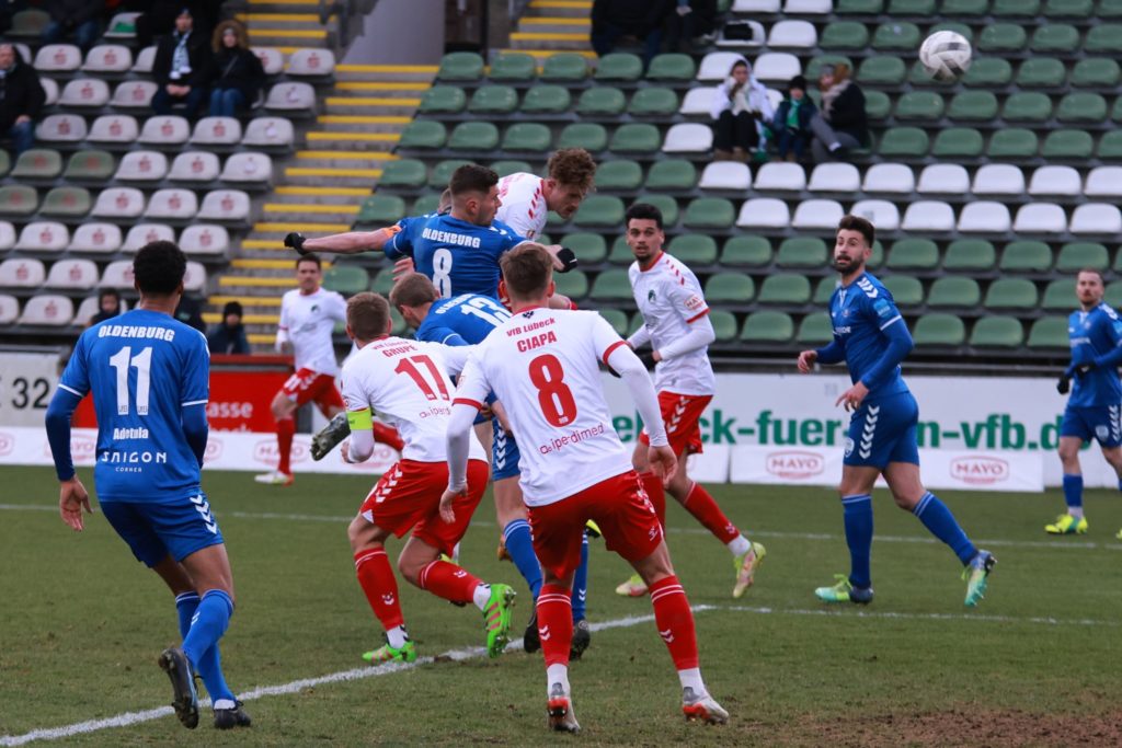 Das Heimspiel des VfB Lübeck gegen Spitzenreiter VfB Oldenburg ist noch nicht lange her, da wirft das Rückspiel schon seine Schatten voraus. Am Ostermontag, 18. April (15 Uhr), trifft die Lübecker Mannschaft im Marschwegstadion zum zweiten Mal binnen weniger Wochen auf den aktuellen Tabellenführer. Für Lübecker Fans, die mit nach Oldenburg reisen möchten, wurde der Ticketvorverkauf bereits freigeschaltet. Karten für den Gäste-Fanblock kosten 9 Euro und sind über den folgenden Link erhältlich: https://tickets-vfboldenburg.reservix.de/p/reservix/event/1908616?discounts=7NkgdsjjyoQQMtywFCcwYuUo7f2Qhv2t. Wir freuen uns auf zahlreiche Unterstützung unserer Mannschaft in Oldenburg (Quelle: PM VfB Lübeck).