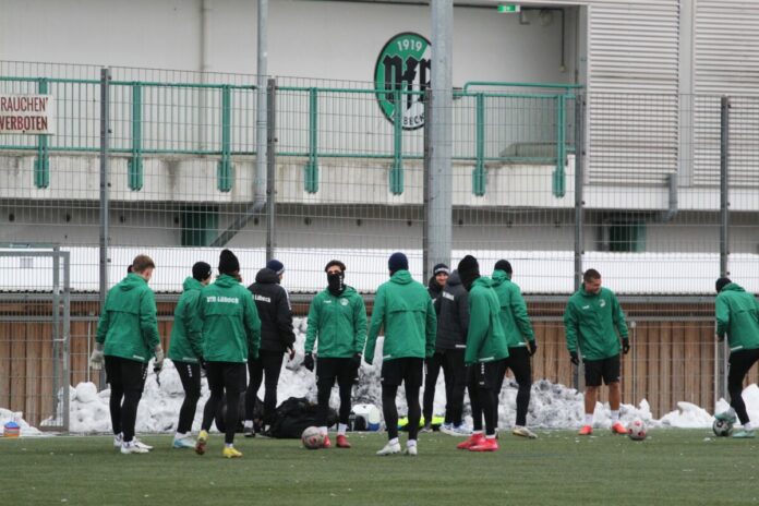 Lübeck – Kein Testspiel gegen Kolding IF (DK), auch das gegen Greifswald wurde bekanntlich abgesagt. Am Dienstag publizierte der VfB Lübeck nun auch noch, dass aufgrund der Minusgrade der für Mittwoch (18.45 Uhr) geplante Test auf Kunstrasen gegen den TuS Dassendorf auch nicht steigen kann. Überraschend kam das nicht wirklich. Guerino Capretti hatte schon am Montag (1. Trainingseinheit der Woche) so seine Bedenken, wurde letztlich bestätigt: „Ich hoffe natürlich das wir spielen können. Das wäre wichtig und schön. Wir müssen aber auch schauen wie es dann ausschaut, wie realistisch das ist“, sagte der Coach dort.
