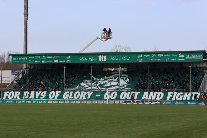 Nach der Gedenkminute für den verstorbenen Franz Beckenbauer nahm die Partie sofort Fahrt auf. Beide Teams spielten flott nach vorne, suchten die Offensive. In der siebten Minute kam Tarik Gözüsirin im Strafraum zu Fall, Schiedsrichter Nico Fuchs ließ weiterspielen. In der 14. Minute keimte Gefahr für das Lübecker Tor auf. Philipp Klewin musste bei einer Flanke per Flugeinlage eingreifen und vor einem Gäste-Stürmer zur Ecke klären. Vier Minuten später war er gegen Terrence Boyd im eigenen Fünfmeterraum auf dem Posten. Der VfB zeigte sich sehr engagiert und trat selbstbewusst auf. Torchancen ergaben sich trotzdem keine. Die größte bis dahin hatte Marius Hauptmann, der an einer Flanke von Janek Sternberg vorbei rutschte (27.). In der Folgezeit stellten sich die Gäste immer besser auf das Spiel der Grün-Weißen ein, dem VfB gelang es nicht mehr so gut, die gegnerische Abwehr unter Druck zu setzen. Daher probierte es Manuel Farrona Pulido mal per Schuss aus der Distanz, der aber von Gäste-Keeper Lucien Hawryluk pariert wurde (40.). Kurz vor der Pause musste Farrona Pulido verletzt raus und wurde durch Robin Velasco ersetzt.
