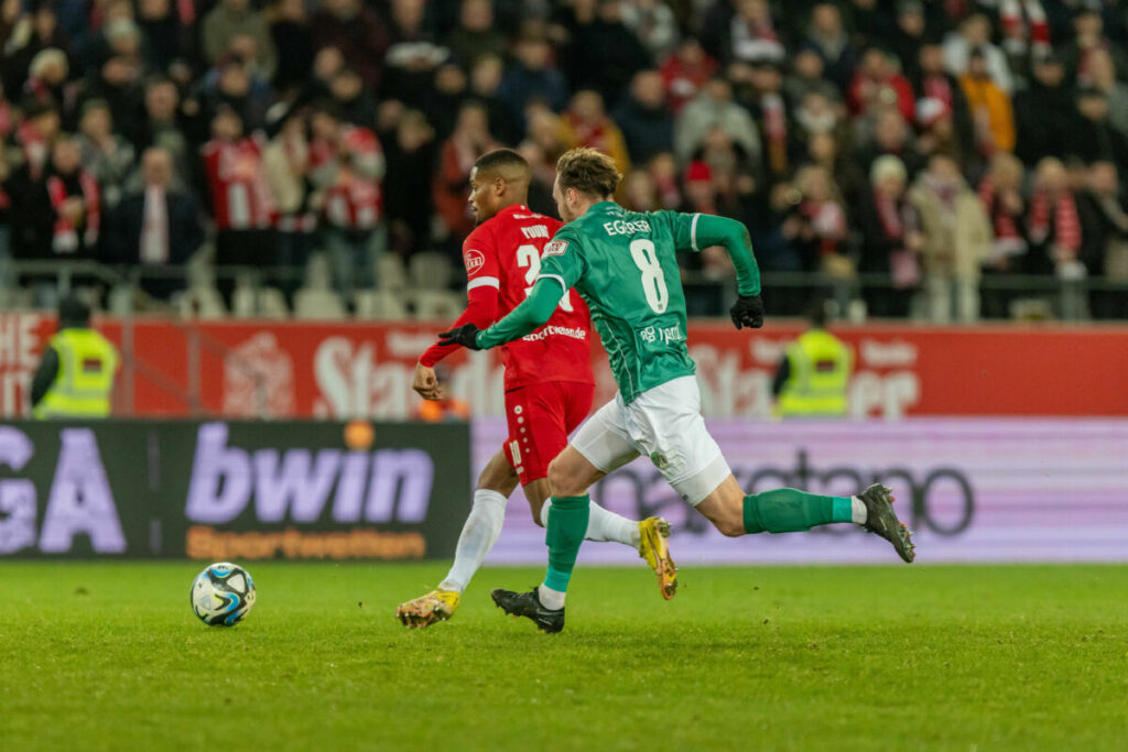 Essen – Nach der Trainerentlassung unterlag der VfB Lübeck am Freitagabend in der 3. Liga mit 0:1 (0:1) bei Rot-Weiss Essen. Es war knapp, denn gerade in der Schlussphase machten die Grün-Weißen viel Druck, doch es fehlte wieder einmal an der Genauigkeit im Abschluss. Der Aufsteiger überwintert auf jeden Fall auf einem Abstiegsplatz.