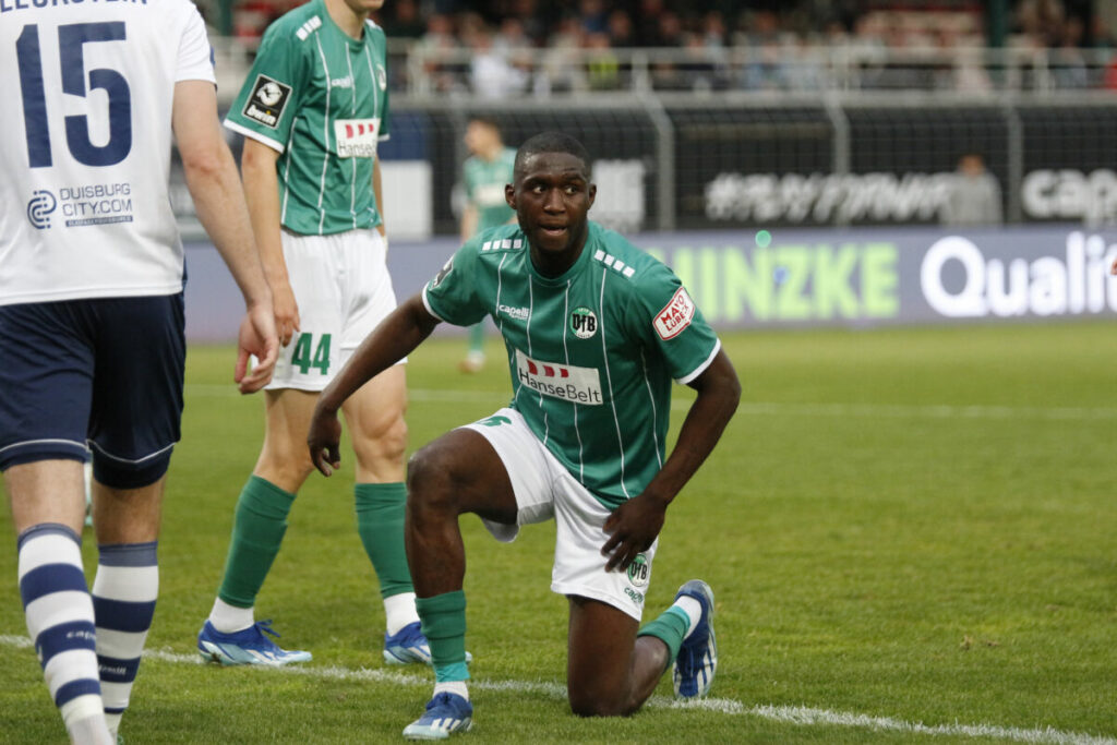 Lübeck – Einigen Spielern vom VfB Lübeck fiel nach dem 5:3-Erfolg in der 3. Liga am Freitagabend gegen den MSV Duisburg ein Stein vom Herzen. Daouda Beleme traf erstmalig in seiner Karriere in Liga 3 und es war der erste Pflichtspieltreffer für den VfB. Nach dem 1:1-Treffer in der 45. Minute schoss Beleme (73.) mit seinem zweiten Tor des Tages den 3:3-Ausgleich nach einem Standard, bei dem sich der 23-Jährige gekonnt gegen MSV-Kapitän Marvin Knoll im Zweikampf durchsetzte.