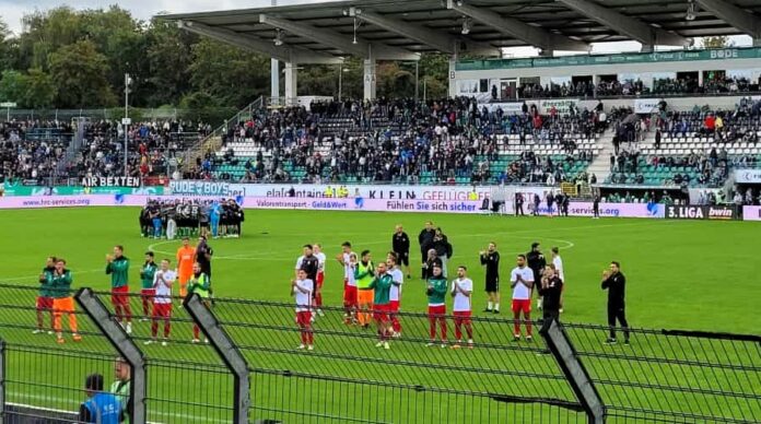 Lübeck – Am Sonnabend führte es den VfB Lübeck in der 3. Liga zu Mitaufsteiger Preußen Münster. Dort erhofften sich die Grün-Weißen nach der unglücklichen Niederlage zuvor gegen Dynamo Dresden Zählbares, wollten punkten. Das gelang den Schleswig-Holsteinern mit dem 1:1, nach Rückstand glich Cyrill Akono noch aus, dann auch. Die Grün-Weißen hatten allerdings auch die Chance auf mehr, ließen aber zwischenzeitlich einfach zu viel liegen. Am Ende schwamm das Pfeiffer-Team sogar noch in der Defensive und hatte noch ein bisschen Glück, um nicht komplett ohne Punkte die Heimreise antreten zu müssen.