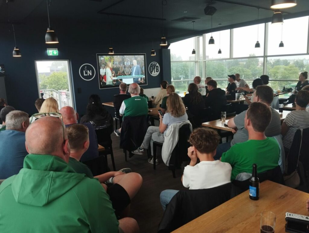 Die Auslosung im TV wurde auch an der Lohmühle verfolgt. Dort hatten sich in der Haupttribüne (Lounge) rund 120 Interessierte eingefunden, drückten kräftig die Daumen. Es hat nicht ganz geholfen mit Blick auf die nun anstehende Aufgabe, die eben nicht aus der 1. Bundesliga kommt. Die Stimmung der VfB-Fans war trotzdem okay, nachdem das Los gezogen und verkündet wurde, ein Mix aus „hätte besser sein können“ und „ist vielleicht ja sogar machbar.“