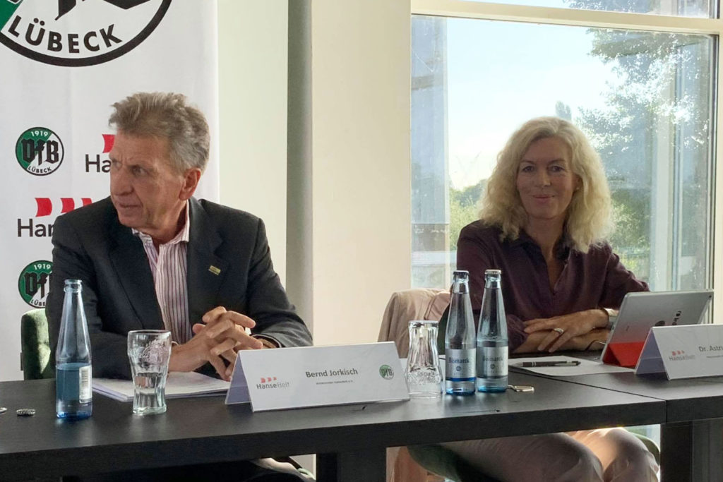 Feierlich und voller Freude saßen die beiden Vorstandsmitglieder Dr. Astrid Bednarski (Geschäftsführende Gesellschafterin inlingua Sprachcenter und Ressortchefin Kommunikation im HanseBelt-Vorstand) und Generalkonsul Bernd Jorkisch (Geschäftsführer der Bernd Jorkisch GmbH & Co. KG und Vorstandsvorsitzender des HanseBelt e.V.), Christian Jessen (Pressesprecher des VfB Lübeck), Thomas Schikorra (Vorstandsvorsitzender des Drittligisten) und Sven Theißen (Marketingleiter der Grün-Weißen) auf dem Podium. Mit dabei waren auch Frank Schumacher (Vorstandsvorsitzender der Sparkasse zu Lübeck AG), Christian Müller (Direktor Geschäfts- und Firmenkunden der HypoVereinsbank Lübeck), Ulf Hahn (Geschäftsführer der Wirtschaftsförderungsgesellschaft im Kreis Herzogtum Lauenburg mbH.), Lars Schöning (Hauptgeschäftsführer der IHK zu Lübeck), Thomas Piel (Vorstandsvorsitzender der Sparkasse Holstein Julia Beckmann (HanseBelt-Managerin), die allesamt im „Hansebelt e.V.“ vertreten sind. Florian Möller (VfB-Vorstand) und andere Personen rundeten die Teilnehmer der Veranstaltung ab.