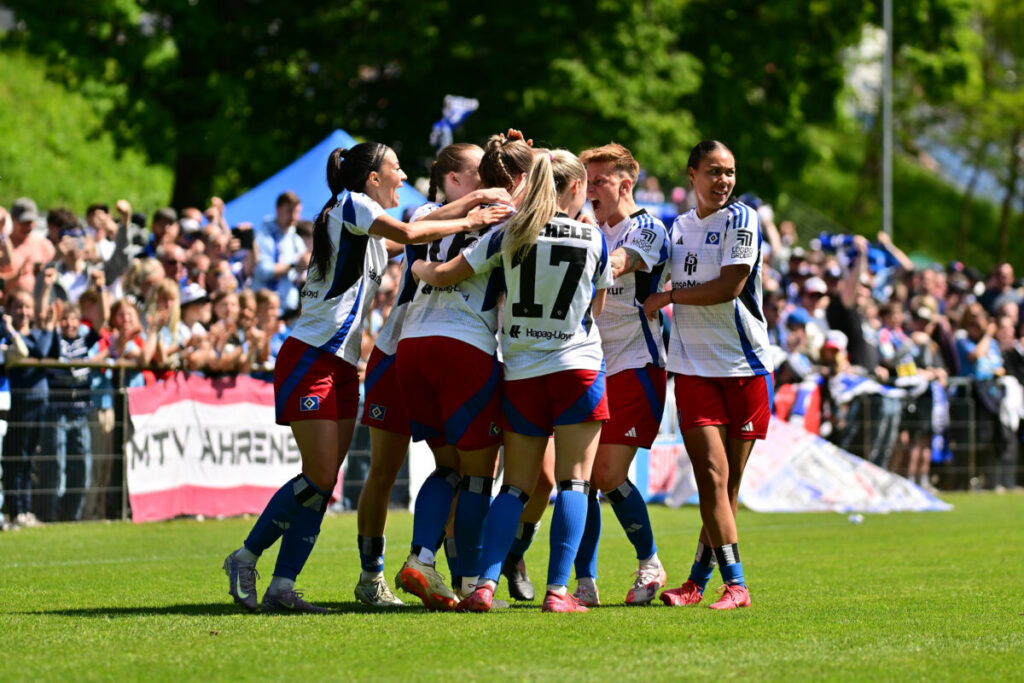 Damit haben die Hamburgerinnen Platz drei sicher und feierten vor dem letzten Spieltag die Rückkehr in die Bundesliga. Wie die Party nach dem Sonnabend weiterging, bleibt offen. Zum Saisonabschluss geht es nun nächsten Sonntag nach Meppen. Die Emsländerinnen unterlagen am Main. Nach dem Sommer ziehen die HSV-Frauen zu den Heimspielen im Fußball-Oberhaus ins große Volksparkstadion um.