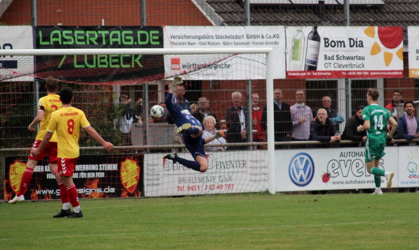 Am Steinrader Damm begann es furios: Timo Barendt brachte die Polizisten bereits mit der ersten Möglichkeit des Spieles mit 1:0 (8.) in Führung. Doch die Hausherren hatten eine Antwort parat: Flanke Sadok Amara, Flugkopfball Jelto Reuter – der 1:1-Ausgleich (11.) war geschafft! In die Pause ging es allerdings doch noch mit einem Rückstand für Dornbreite, da erneut Barendt, Jannik Braun hatte mustergültig geflankt, per Kopfball (41.) Neumünster in Front brachte. Im zweiten Abschnitt neutralisierten sich beide Teams zunächst. Trotzdem hatte der FCD, nachdem zuvor Neumünster die Möglichkeit den Sack zuzumachen (81.) vergab, die Chance zum Ausgleich auf dem Fuß. Doch Lubecco Behrens (82.) scheiterte an PSV-Keeper Philipp Reinhold.