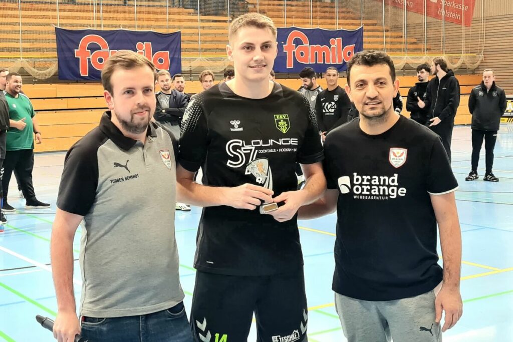 Zum Abschluss wurden die Ehrungen vorgenommen. Der beste Torhüter, sowie Spieler des Turniers wurden von den Teams gewählt. Der Preis zum besten Keeper ging an Julian Kramek vom Titelträger. Spieler des Turniers, sowie Torschützenkönig wurde Tino Arp. Dieser verzauberte die mit 800 Zuschauern gut gefüllte Hansehalle und ließ einige staunen. Für den Titel sollte es allerdings nicht reichen. Im Gespräch mit HL-SPORTS verriet er was den Hallenfußball so besonders und beliebt macht: „Ich glaube Hallenturniere sind für jeden Straßenkicker das geilste. Du hast viele Abschlüsse, viele Dribblings und Zweikämpfe, das ist das, was jeder Fußballer eigentlich will.“ Zum verpassten Turniersieg setzte er fort: „Die Hauptsache war das wir Spaß hatten. Am Ende hat die Luft gefehlt. Die Beine wurden schwer, wir hatten teilweise fünf Spiele Pause und sich dann am Sonntagabend nochmal aufzuraffen ist schwierig, aber Azadi hat das sehr gut gemacht. Es ist nicht unverdient.