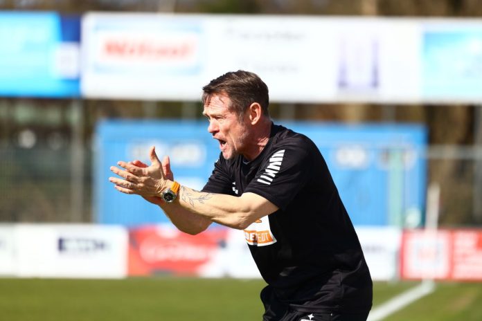 Jörn Großkopf (Trainer Eintracht Norderstedt) motiviert seine Mannschaft. Foto: Lobeca/Ralf Homburg