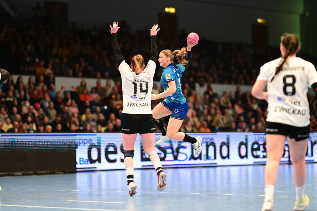 Hamburg – Der Buxtehuder SV hat am Donnerstag sein Heimspiel der Frauen-Bundesliga gegen Sachsen Zwickau mit 27:26 (16:17) gewonnen. In die Sporthalle Hamburg, wohin die Niedersachsen die letzte Partie des Jahres hin verlegt hatten, kam die Mega-Kulisse von 2.300 Zuschauern zusammen. So eine Zahl gab es in 33 Jahren 1. Liga noch nicht. Zudem knackte man den Saisonrekord der Partie Bietigheim gegen Dortmund (1.829 Besucher).