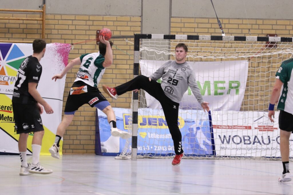 Nach dem 1:2-Rückstand in der 4. Minute fand die Mannschaft von Trainer Nico Kibat in der Defensive Zugriff. Mit dieser Sicherheit im Rücken verschaffte sich die HSG Ostsee Neustadt/Grömitz mit einem 4:0-Lauf beim 5:2 (10.) etwas Luft. Doch der Oranienburger HC ließ sich noch nicht abschütteln, kam beim 4:5 (15.) wieder in Schlagdistanz. In der Offensive taten sich die Ostholsteiner schwer und ließen einige Möglichkeiten zum Abschluss ungenutzt. Diese Fehler bügelte Torhüter Max Folchert aus – parierte unter anderem drei Siebenmeter – was dazu führte, dass die Heimmannschaft die Ruhe behielt, trotz Unterzahl und vergebenen Siebenmeter. Dieses gab Auftrieb, dass die HSG beim 10:5 (24.) erstmals mit fünf Toren in Front lag und anschließend ein beruhigendes 12:8 mit in die Kabinen nahm.