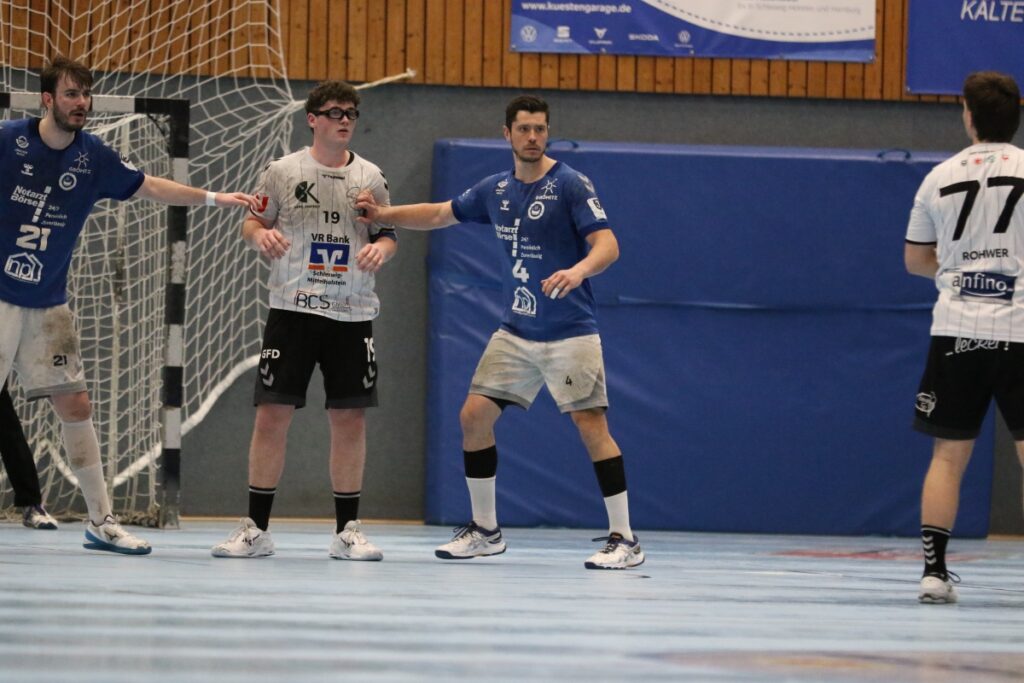 HSG-Legende Jonas Engelmann – der seine Karriere im Leistungshandball eigentlich schon beendet hatte und am vergangenen Wochenende als Spieler der 2. Mannschaft der HSG Ostsee die Meisterschaft in der Kreisliga feierte, gab sein Comeback für die 1. Herrenmannschaft – es war, als wäre er nie weg gewesen. Im Innenblock neben Abwehrchef Mats Schramm zeigte er sich körperlich in bester Verfassung und stellte die Hohner Offensive immer wieder vor neue Herausforderungen.