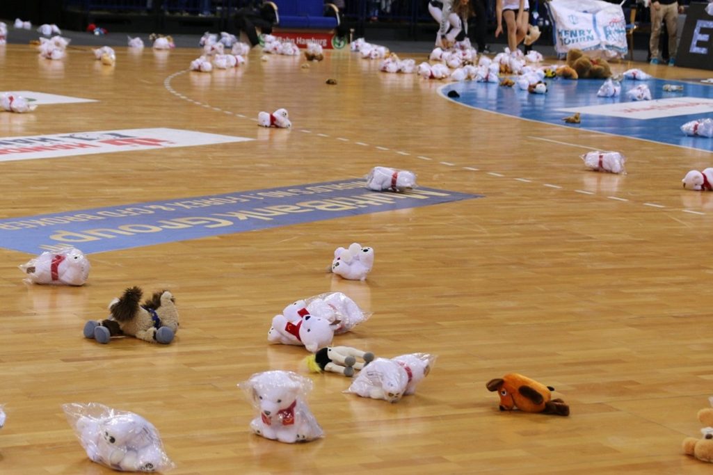 Im Vorfeld des Zweitligaspiels gegen den TuS Ferndorf am 2: Weihnachtsfeiertag des vergangenen Jahres bot der HSVH gemeinsam mit der McDonald’s Kinderhilfe Stiftung Fans die Möglichkeit, gegen eine Spende einen Teddybären zu erhalten. Diese Teddybären flogen in der Halbzeitpause des Spiels in der Barclaycard-Arena gemeinsam mit vielen anderen mitgebrachten Kuscheltieren bei einem sogenannten „Teddy Toss“ auf die Platte. Insgesamt kamen allein durch die Teddybären-Aktion 3.180,01 Euro zusammen. Schon bei den Heimspielen im November und Dezember war die McDonald’s Kinderhilfe Stiftung mit einem Spenden-Stand in der Halle vertreten, wo der Eisbär „Emil“ erhältlich war.