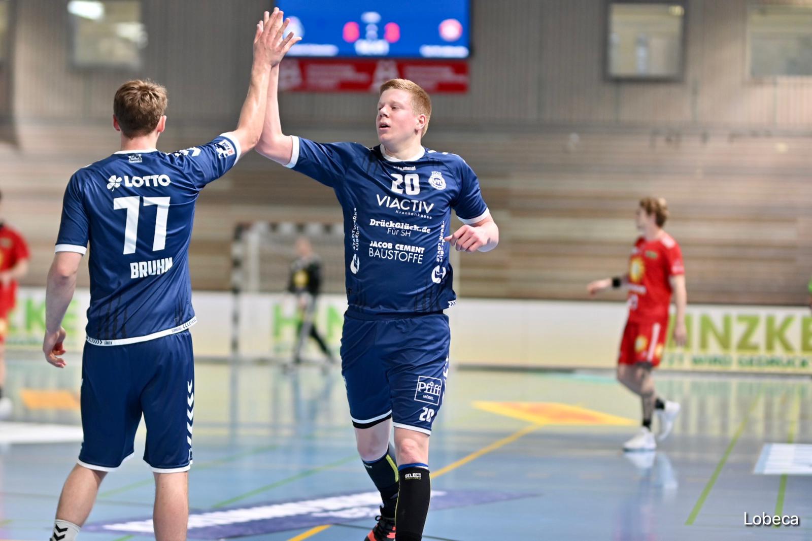 Lübeck – Nach zuletzt extrem schwankenden Leistungen der Handballer des VfL Lübeck-Schwartau gingen diese nicht unbedingt am Mittwochabend gegen Aufstiegsanwärter Nettelstedt als Favorit ins Rennen. Doch wen interessiert der Schnee von gestern. Trotz diverser Ausfälle, auch einem Coronafall, waren es die „Tiger“, die einfach mal so einen Aufstiegsanwärter mit 33:30 (14:12) aus der Lübecker Hansehalle fegten. Verständlich, das sich ganz „Blau-Weiß“ freute, allen voran natürlich aber auch Piotr Przybecki.