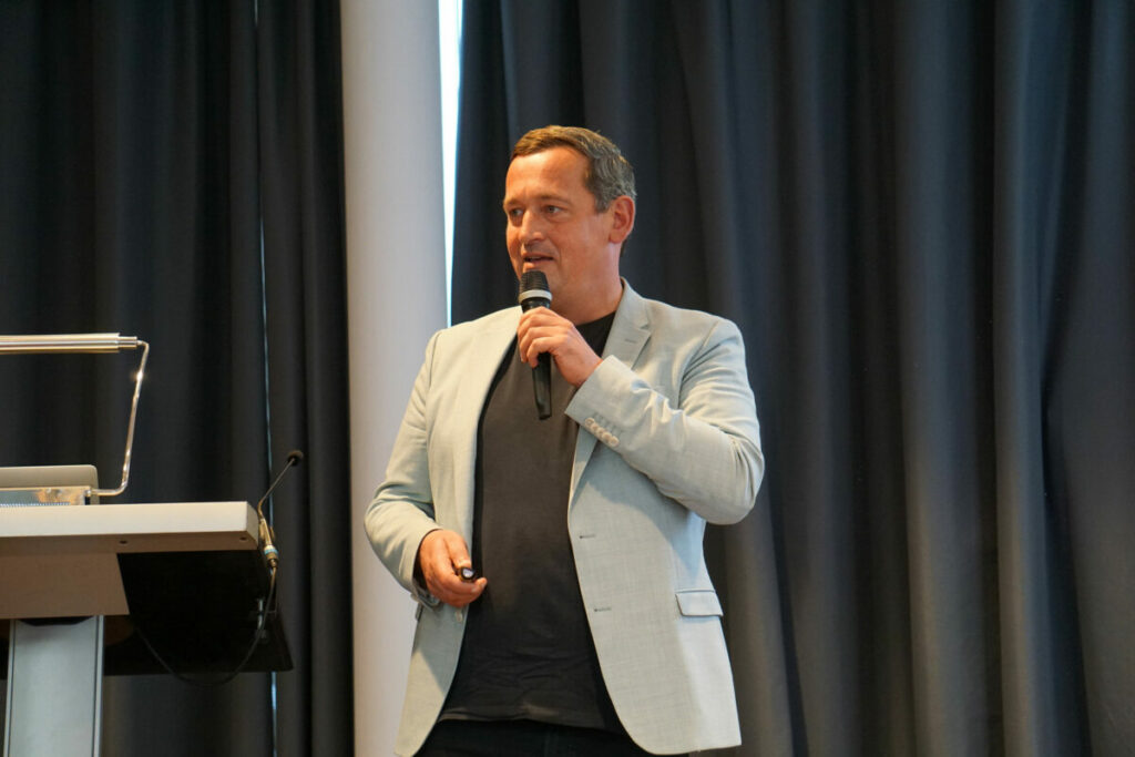 Dabei wurde die Vergangenheit von allen stark beleuchtet, doch was interessanter gewesen ist, war die Zukunft: Gudel sprach vom Jahr 2030. „Wenn ich richtig gerechnet habe, feiert unser Verein dann sein 111. Jubiläum. Wo ist der VfB Lübeck dann?“, stand an der Leinwand. Der 49-Jährige kommentierte und sprach vom Traum 2. Bundesliga. Verrückt vielleicht, doch ohne Vision und Ziel müsste man in der „toten“ Regionalliga oder auch in der 3. Liga bleiben. „Wir haben ein eigenes Stadion mit Infrastruktur, wir haben eine Identität und Tradition“, meinte er und machte dabei klar, dass der Standort auch ein Handelskreuz zwischen Ost und West sowie Nord und Süd sei. Das potente Umland will man für sich gewinnen und Menschen für den VfB begeistern. Dabei brachte er die Städte Ulm (130.00 Einwohner), Elversberg (7.500), Heidenheim (51.000), Kiel (253.000) und Magdeburg (245.000) zur Sprache. „Was haben die, was wir nicht auch haben?“