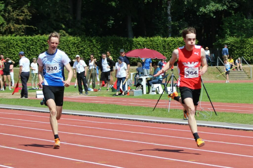 In der Jahnkampfbahn holte sich Max Willms vom LBV Phönix am Sonnabend (3.6.) souverän den Titel über 100 m in der M15. Nach 11,45 Sekunden im Vorlauf steigerte sich das Talent aus Ratekau im Finale als Sieger auf großartige 11,26 Sekunden – persönlicher Rekord! Zum Vergleich: Im Vorjahr bedeuteten 11,71 Sekunden Platz 1 in der M15-Bestenliste des Schleswig-Holsteinischen Leichtathletik-Verbandes (SHLV). Ben Witzke vom VfL Bad Schwartau wurde in Hamburg Dritter in 11,83 (Vorlauf 11,98).