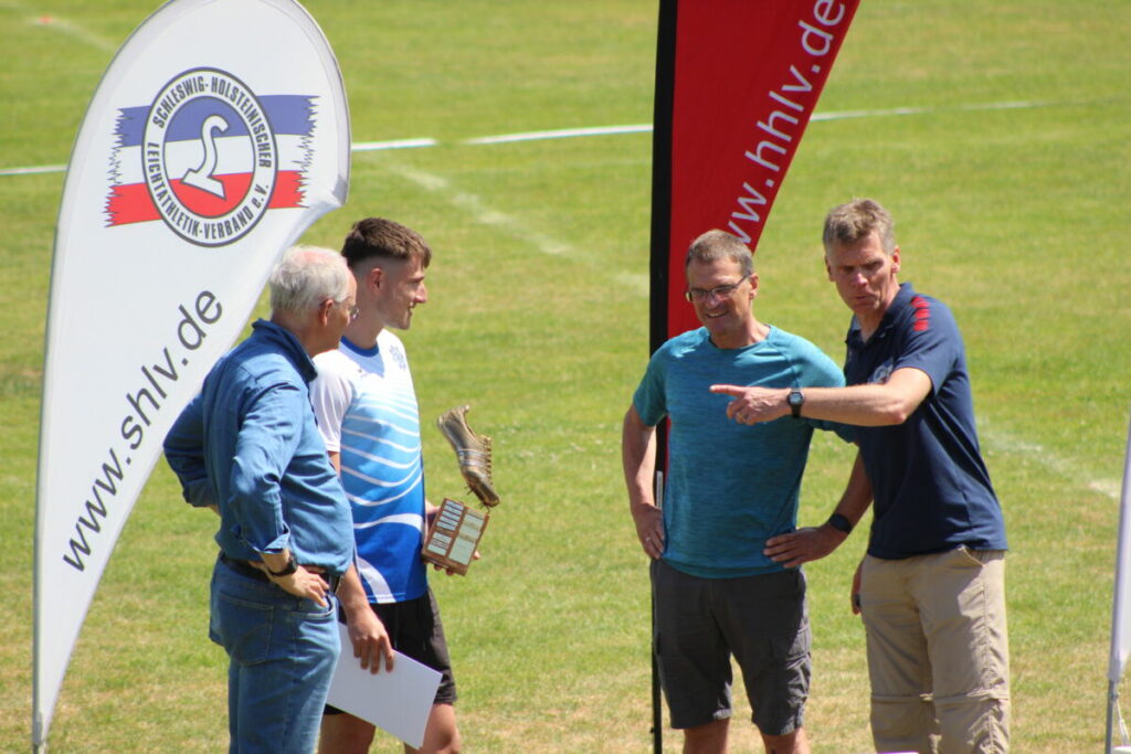 Der „Goldene Rennschuh“, der als ewiger Wanderpreis von SHLV-Mitbegründer Christian „Tischi“ Martens gestiftet wurde, wird in diesem Jahr an den Speerwerfer Niklas Sagawe vom Polizei SV Eutin verliehen. Diese Trophäe ist die höchste Auszeichnung des Verbandes und wird jährlich abwechselnd an einen verdienten Funktionär beziehungsweise an einen herausragenden Sportler vergeben.