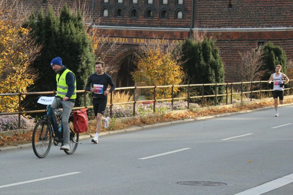 Einen Heimsieg feierte Simon Müller vom Tri-Sport Lübeck auf der Marathon-Distanz. Schon als es zum Auftakt vom Kohlmarkt einmal rund ums Holstentor ging, umrundete Müller einsam das Wahrzeichen. Zweieinhalb Stunden später – exakt nach 2:31:16 Stunden war er am Ziel vor dem Rathaus. Gut neun Minuten später folgte Friedrich Hegge (Sport-Club Itzehoe) in 2:40:27. Rang 3 sicherte sich Till Winkel (Ottensen Axes) 2:44:15).