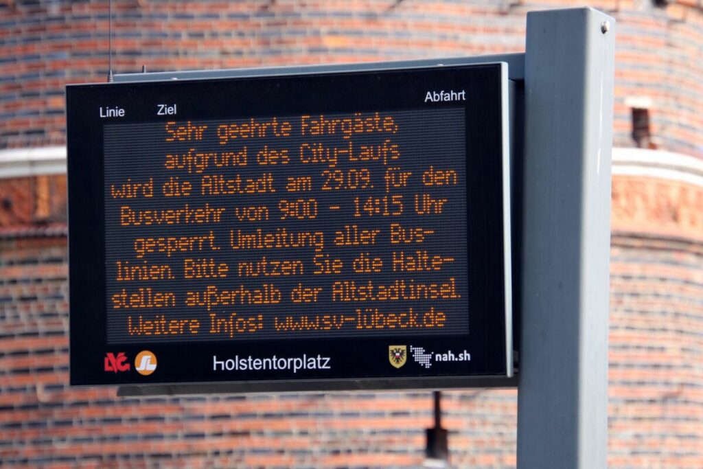 Der Stadtverkehr informierte unter anderem am Kohlmarkt und am Holstentor; in der Possehlstraße wurde eine Ersatzhaltestelle eingerichtet.