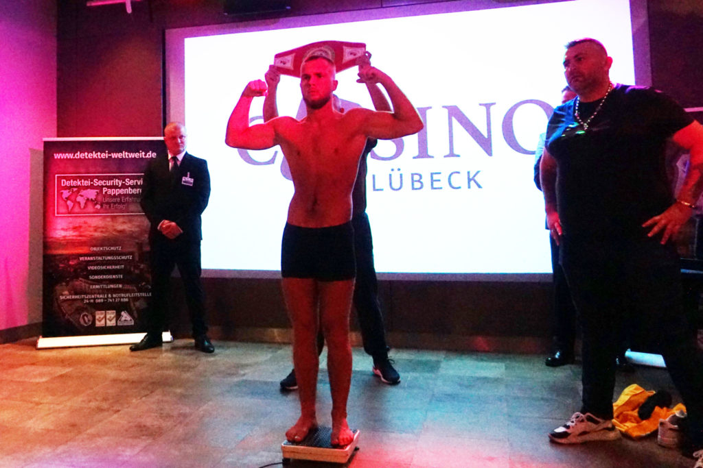 Bielenberg ließ sich nichts anmerken, war professionell. „Es ist alles perfekt. Ich freue mich, dass ich mein Gewicht habe und jetzt endlich essen kann. Meinen neuen Gegner habe ich jetzt einmal im Video gesehen. Von den Amateuren bin ich es gewohnt gegen jemanden zu boxen, den ich nicht kenne. Zwei, drei Sachen habe ich schon erkannt, wo ich meine Stärken ausspielen kann. Ich will den Titel nach Lübeck holen“, sagte der 18-Jährige nach dem Wiegen.