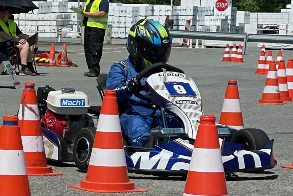 Zehntel Sekunden entschieden in dieser Klasse über die Podestplätze. Hier muss das Zusammenspiel von Schnelligkeit und Präzision passen. Baran Sommer war sehr schnell unterwegs und ließ alle Pylonen stehen, sicherte sich den 1. Platz, da die Schleswiger Fahrer nicht in der Wertung lagen. Um auf den vorderen Plätzen zu landen, dürfen in dieser Klasse keine Pylonen fallen. Mit sehr guten Zeiten, aber zwei gefallenen Pylonen reihte sich Philip Nothnagel auf dem 7. Platz ein. Müller: „Er wird zeitlich immer besser, fährt sehr eng und mit vollem Körpereinsatz, aber die Pylonen müssen stehen bleiben, dann wäre hier ein 2. Platz drin gewesen.“