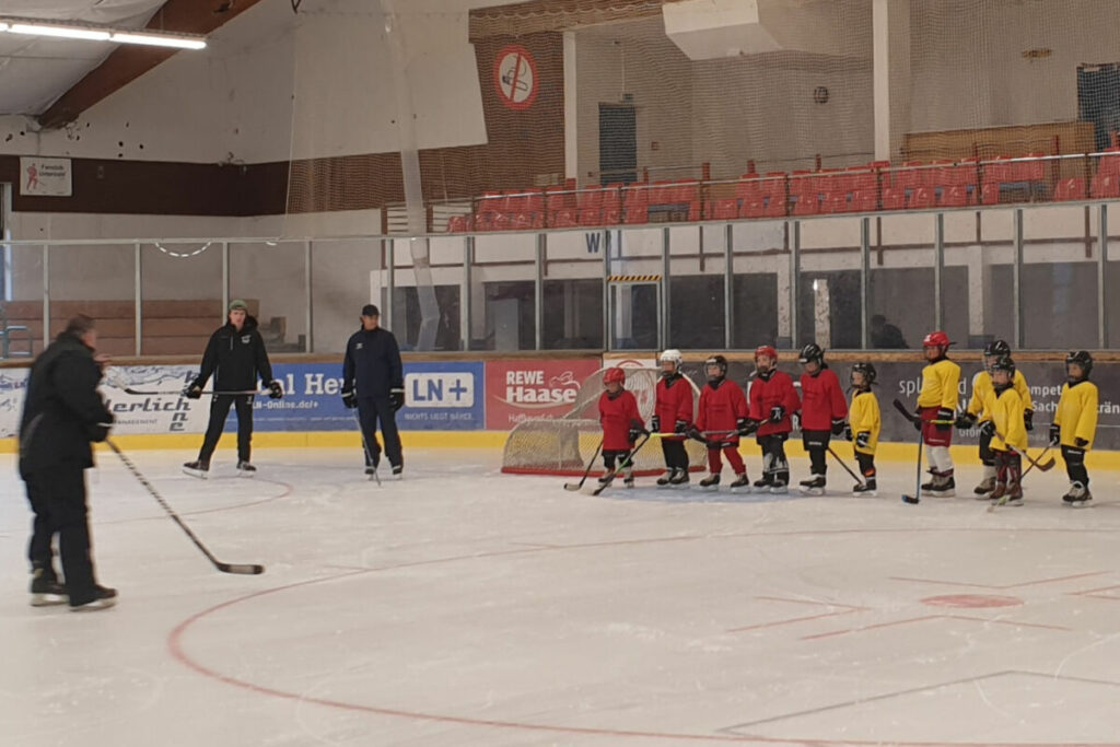 Am Donnerstagabend gab es einen Solidaritätsbesuch des VfB Lübeck. Unter dem Motto “Sportler helfen Sportlern“ schauten die Regionalliga-Fußballer vorbei. Den Grün-Weißen wurde bekanntermaßen am Ende des vergangenen Jahres eine große Solidarität über die eigenen Stadtgrenzen hinaus zuteil. „Auch deshalb war es uns eine Herzensangelegenheit, den Sportlern in Timmendorfer Strand unsere Solidarität zu signalisieren“, heißt es in einer Mitteilung des Clubs. Die Spieler Noah Oberbeck, Tom Geerkens und Robin Kölle gemeinsam mit den Medienverantwortlichen Antonia Lichte und Max Lübeck, sowie Marketing-Mitarbeiterin Laura Woisin stellvertretend für den Verein waren in der Eissporthalle vor dem Training der Regionalliga-Mannschaft des CE Timmendorf zu Gast. „Wir drücken allen Eisportlern und Tennisspielern die Daumen, dass sie auch künftig eine sportliche Heimat im Timmendorfer Strand haben werden.“