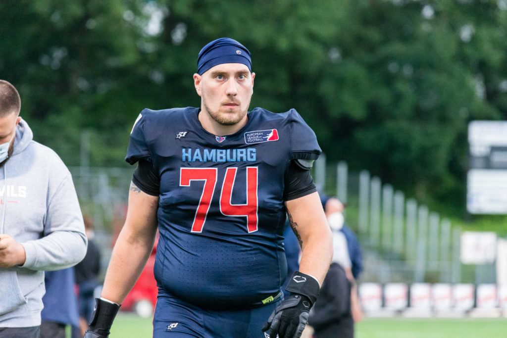 Football is Family! Die Hamburg Sea Devils verlängern mit Offensive Lineman Dennis Kenzler für die kommende Saison der European League of Football. Mit 130 Kilogramm und knapp zwei Metern Körpergröße geht Kenzler in sein zweites Jahr mit den Hamburg Sea Devils. Zuvor spielte er bereits für die Elmshorn Fighting Pirates und Braunschweig Lions. Der 30-Jährige bleibt auch nach Jahren im deutschen Football gewohnt angriffslustig. „Der letzte große Football-Titel der Stadt Hamburg war damals der ‚World Bowl‘ der Sea Devils im Jahr 2007. Jetzt ist es an uns, mal wieder einen Pott nach Hamburg zu bringen. Das war und bleibt unser Ziel“, äußert sich Kenzler optimistisch. Als neuer Offensive Coordinator, ist auch Kirk Heidelberg überzeugt von der Verlängerung. „Ich habe ihn letztes Jahr als Tackle spielen sehen. Er bringt gute Maße und Erfahrung mit, die uns dabei helfen wird, einen weiteren Schritt in der Offensive Line zu gehen. Er ist in der Off-Season noch stärker geworden“, schaut Heidelberg zuversichtlich auf die anstehenden Herausforderungen. In der Off-Season steht beim norddeutschen Hünen jedoch nicht nur das Training, sondern mittlerweile auch Flüchtlingshilfe für Ukrainer auf dem Programm. „Mein ehemaliger Arbeitgeber hat mich am Donnerstag angerufen, wollte direkt am Freitag nach Warschau, um dort Hilfsmittel hinzubringen. Ich habe meinen jetzigen Chef gefragt und habe kurzfristig freibekommen. Darüber bin ich sehr dankbar. Jetzt bringen wir Lebensmittel, Decken und Isomatten nach Polen und bringen Flüchtlinge in Sicherheit“, erklärt Kenzler, der sich der Krisenlage bewusst ist: „Wir wollen Gutes tun, wissen aber noch nicht genau, was uns erwartet. Vielleicht müssen wir auch draußen schlafen, das nehme ich aber gerne in Kauf.“ Seit Freitagmorgen ist der in Elmshorn aufgewachsene Footballspieler auf dem Weg nach Warschau. Die Hanseaten sind stolz, mit Kenzler nicht nur einen erfahrenen Athleten, sondern auch einen Menschen mit herausragendem Teamgeist für den 2022er-Kader präsentieren zu dürfen. Somit nimmt die Offensive Line weiter Formen an. Zuletzt stellten die Sea Devils mit Gian De Guzman, Shalom Baafi oder Dominik Behrens weitere starke Spieler für die Offensive Line vor.