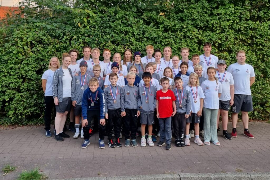 Fünfmal standen am Wettkampfende Lübecker Teams auf dem Treppchen: eine Bronzemedaille ging an die Mannschaft der Jugend E mixed (Jg. 15/16), Silber gewann das Team der männlichen Jugend D (Jg. 11/12). Die älteren Schwimmer und Schwimmerinnen aus der ersten SG-Leistungsgruppe waren alle nicht zu schlagen – Gold ging an die Mannschaften der männlichen Jugend B (Jg. 10/09), der männlichen Jugend A (Jg. 08/07) und der weiblichen Juniorinnen. „Neben den sehr guten schwimmerischen Leistungen beeindruckten nicht nur mich das lautstarke Anfeuern und der Zusammenhalt im gesamten Team“, freut sich Trainer Alexander Müller über den Erfolg seiner Aktiven.