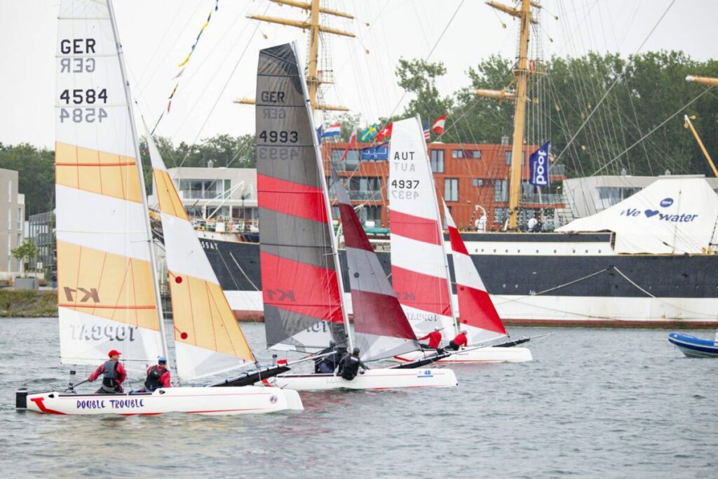 Bei den Topcat K1 ging der EM-Führungstag an die Zwillingsbrüder Sascha und Rene Treichel aus Wolfsburg. Die Weltmeister von 2018 und 2022 gewannen auch die Trave Races am Abend vor der „Passat“ – trotz strömenden Regens. In der EM-Gesamtwertung liegen sie vor den Österreichern Equiluz/Wallner und dem Chiemsee-Duo Pohl/Schleich.