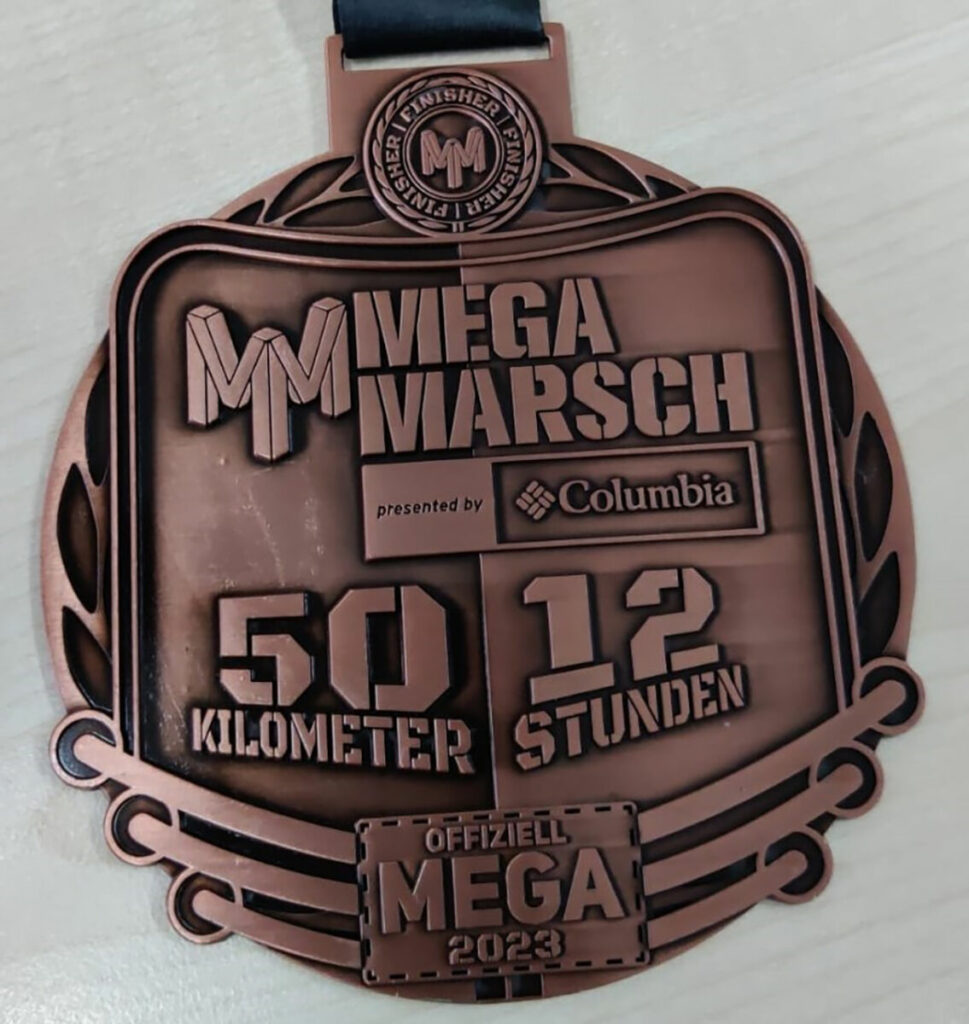 Die Megamarsch-Medaille 2023. Foto: Fight Factory e.V.