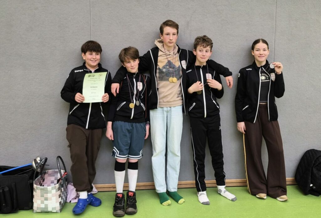 Am 8. März 2026 machten sich ein kleines, aber feines Team des FC Lütjensee auf den Weg nach Itzehoe, um Medaillen bei den Jugend-Landesmeisterschaften in Schleswig-Holstein zu ergattern. Um es vorwegzunehmen: das gelang auch. Die Herrensäbler des FCL gingen an diesem Tag deshalb in eine gemeinsame Vor- und Zwischenrunde aus U13 und U15. Maxim Krogmann ließ den anderen keine Chance und siegte sechs Mal. Oliver Schmidt und Laurin Stegmann konnten jeweils drei Gefechte gewinnen, während für Emil Marsian – den Jüngsten im Bunde – sechs Niederlagen notiert wurden. Das Finale bei den U13 gewann Stegmann mit 10:7 gegen Marsian, während Krogmann dann Stegmann mit 15:0 bezwang. Die U17er fochten ein gemischtes Turnier mit Damen und Herren, wo nach zwei Runden Maxim Krogmann einen Sieg und Anastasia Winternheimer (FCL) zwei Siege verbuchten. Im Finale der Damen unterlag Winternheimer knapp mit 12:15, für Krogmann gab es den Titel kampflos. Bei den Florett-Herren (U15) startete Linus Panier. In seinem erst zweiten Turnier ging es wieder gegen viel erfahrenere Kontrahenten, so dass er zwar kein Gefecht gewann, aber sich über einige Treffer freute.