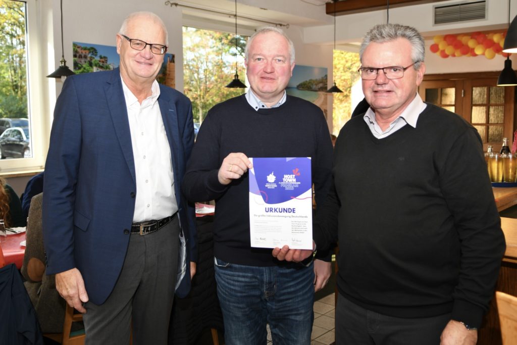 Der KSV Stormarn verfasste zu diesem Thema folgende Pressemitteilung: Rund 200 neue Mitglieder verzeichnet der Hoisbütteler SV seit der Eröffnung des Studios Mitte des Jahres. Doch nicht nur das: Erst kürzlich wurde die Trainingsstätte am Bullenredder von der Volksbank Raiffeisenbank eG mit dem Stern des Sports in Bronze und 1500 Euro ausgezeichnet. Der „kleine HSV“ wird somit den Kreis Stormarn beim Wettbewerb auf Landesebene für die „Sterne des Sports“ in Silber im November in Kiel vertreten. Vom Studio aus ging es in eine im Vereinshaus des Hoisbütteler SV ansässige Tapas-Bar. KSV-Vorsitzender Fritz hob dort noch einmal die gute Zusammenarbeit von Politik und Sport hervor, die kommendes Jahr sogar für einen Hauch von olympischem Flair sorgen wird. Stormarn ist Host Town der in Berlin ausgetragenen Special Olympics World Games und Gastgeber der olympischen Delegation aus Tadschikistan. Stellvertretend für das Local Organizing Committee überreichte der Präsident von Special Olympic SH Joachim Lehmann eine Ernennungsurkunde an Kreispräsident Hans-Werner Harmuth und Landrat Henning Görtz. Schweren Herzens verabschiedete der KSV seine Mitarbeiterin Pia Görrissen. Die 28 Jahre alte studierte Sportwissenschaftlerin beendet zum 31. November ihre Aufgabe als Inklusionsbeauftragte des Kreissportverbands Stormarn. Görrissen wechselt in ihre Heimatstadt Kiel, um sich an der dortigen Universitätsklinik dem Thema „Menschen mit neurologischen Erkrankungen“ zu widmen. „Hinter mir liegt eine sehr spannende, aber auch herausfordernde Zeit“, sagt Görrissen. „Die Zusammenarbeit mit Sportlern und Sportlerinnen mit und ohne Beeinträchtigungen, aber auch der Aufbau neuer inklusiver Angebote gemeinsam mit den Vereinen hat mir viel Freude bereitet.“